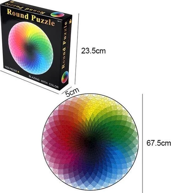 Deze geometrische regenboogpuzzel van 1000 stukjes is een echte uitdaging voor jong en oud, voor zowel beginnende als doorgewinterde puzzelfanaten! Door zijn ronde vorm en brede kleurenspectrum is deze puzzel extra leuk voor iedereen die van een leuke puzzeluitdaging houdt!