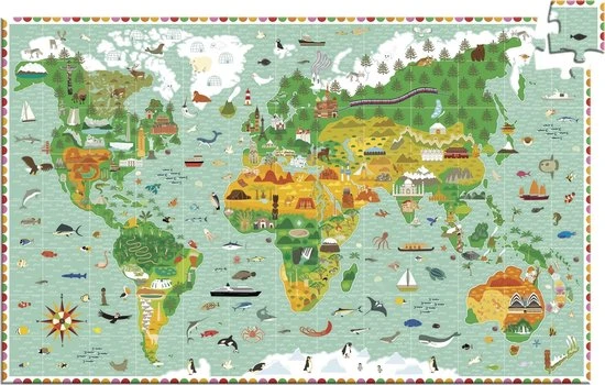 Maak een wereldreis langs alle continenten en leer alles over onze mooie planeet! Het opera-gebouw in Sydney, de Taj Mahal of de Big Ben… op deze puzzel vind je ze allemaal terug! Bij de puzzel ontvang je een begeleidend boekje waarin van elk continent de belangrijkste monumenten, dieren en fauna beschreven worden. Ook wordt er een real-size poster meegeleverd waarop de puzzel gemaakt kan worden wanneer het puzzelen nog te lastig is.