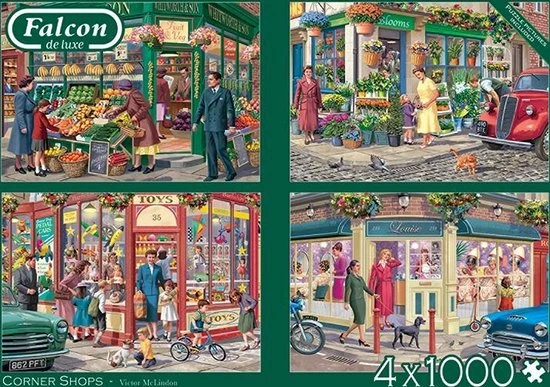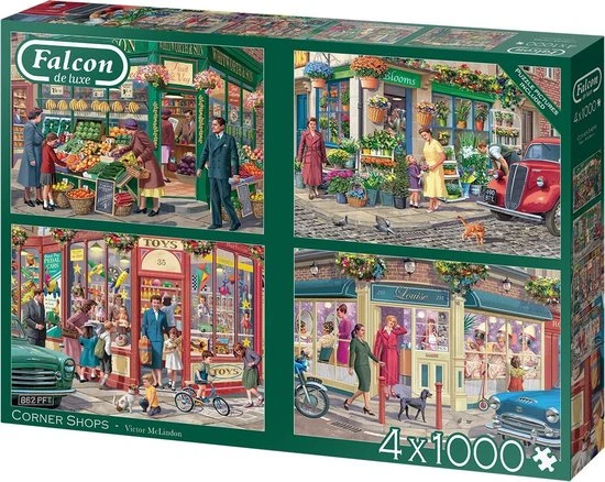 Falcon Puzzel Corner Shops – Legpuzzel – 4×1000 Stukjes