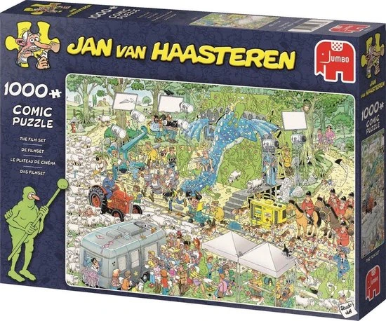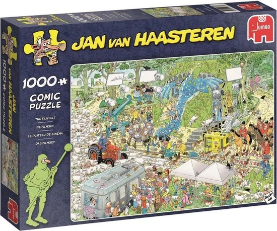 Jan van Haasteren De Fimset Puzzel met 1000 Stukjes is een van de nieuwe puzzels van Jan van Haasteren. Op deze Filmset verloopt niet alles even soepel. De Filmset van Jan van Haasteren puzzel met 1000 stukjes voor de echte Jan van Haasteren fans! Zodra je Jan van Haasteren De Filmset met 1000 Stukjes begint te puzzelen stuit je op het ene na het andere hilarische tafereel. Jan van Haasteren heeft ook deze keer weer laten zien dat humor op een prachtige manier kan worden verwerkt in een puzzel. Jan van Haasteren puzzels zijn puzzels met veel kleur en details. Jan van Haasteren tekent al decennia lang humoristische platen die je steeds weer verrassen en laten lachen. De echte fans kennen de specifieke kenmerken van Jan van Haasteren en zoeken in elke puzzel direct naar de haaienvin, Sinterklaas, de handjes, het kunstgebit en Jan?s zelfportret. Jumbo heeft tientallen Jan van Haasteren puzzels in de collectie van 54 tot maar liefst 5.000 puzzelstukjes.