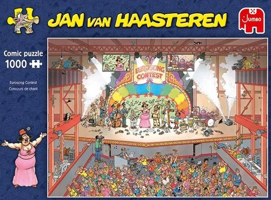 Een schitterende Jan van Haasteren puzzel van het Eurovisie songvestival met 1000 stukjes. De Nederlandse editie van het Eurovisie songfestival gaat voorlopig niet door. Maar dat mag de pret niet drukken voor de grote puzzellaars, want met deze puzzel leg je het Eurovisie songfestival neer op jouw tafel. Ook deze puzzel van Jan van Haasteren bevat enorm veel specifieke details. Weet jij waar ze zitten?