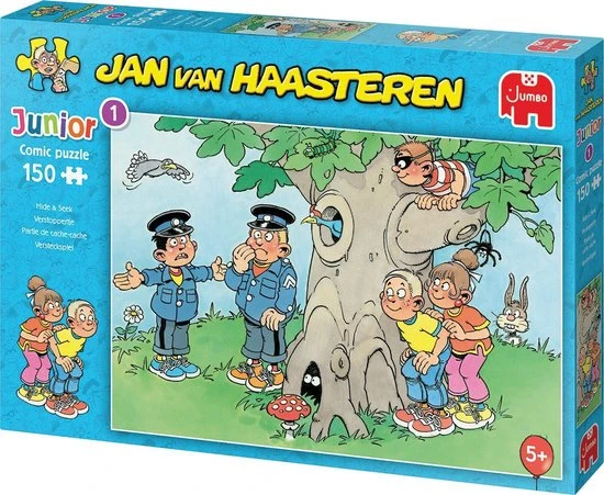 De vrienden van Jan van Haasteren Junior spelen verstoppertje. Het is de beurt aan de politie om de anderen te vinden. Lukt het hen om de boef te vinden?