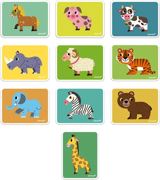 Educatief magneetspel van karton met dieren als thema. Bevat 30 magneten en 10 kaarten. Open het boek en maak hetzelfde dierentafereel als deze die op de kaart is aangegeven met behulp van de magneten. Het kind kan tevens andere gekke dieren maken aangezien alle stukken met elkaar verbonden kunnen worden.