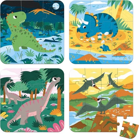 Janod Puzzel – 4 Puzzels Dinosaurus