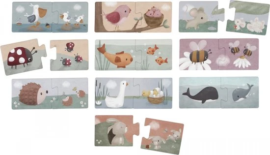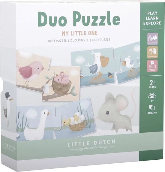 Help de baby dieren en insecten met het vinden van hun ouders! Waar zijn de baby konijntjes en mama konijn? Kun je de baby walvis en z?n vader vinden? Heb je Little Goose nest gezien met kleine gansjes? De puzzelstukjes van deze schattige Little Dutch Duo Puzzel staan vol met mooie illustraties van dieren. Perfect voor kleine kindjes! Er kunnen 10 combinaties gemaakt worden die helpen bij de ontwikkeling van de concentratie en motoriek van kinderen. Veel plezier met het maken van de puzzels!