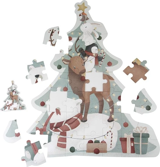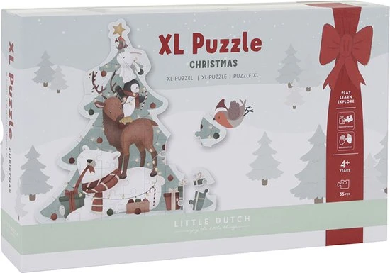 Geniet van de gezellige kerstdagen en maak samen de XL kerstpuzzel. Kom op de grond zitten en leg alle 35 puzzelstukken in elkaar. Zo ontstaat er een grote illustratie van 93cm hoog. Het rendier, konijntje en hun andere vriendjes zijn druk bezig om de kerstboom te versieren. De XL kerstpuzzel bevordert de concentratie en hand-oogco?rdinatie van je kleintje. Wat zie jij allemaal verschijnen?