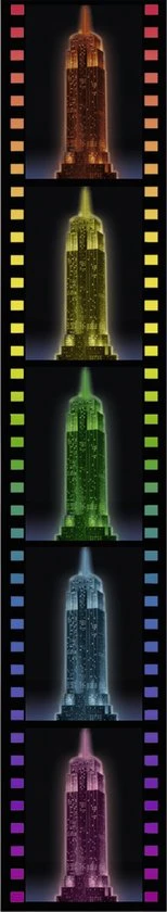Beleef iets unieks door de Ravensburger Empire State Building by night de hoogte in te laten groeien. De perfect passende kunststof puzzelstukjes zorgen voor een goede stabiliteit, zonder lijm. Een echt hoogtepunt is het gebouw in het donker, wanneer de toren van binnenuit schittert in afwisselende kleuren.