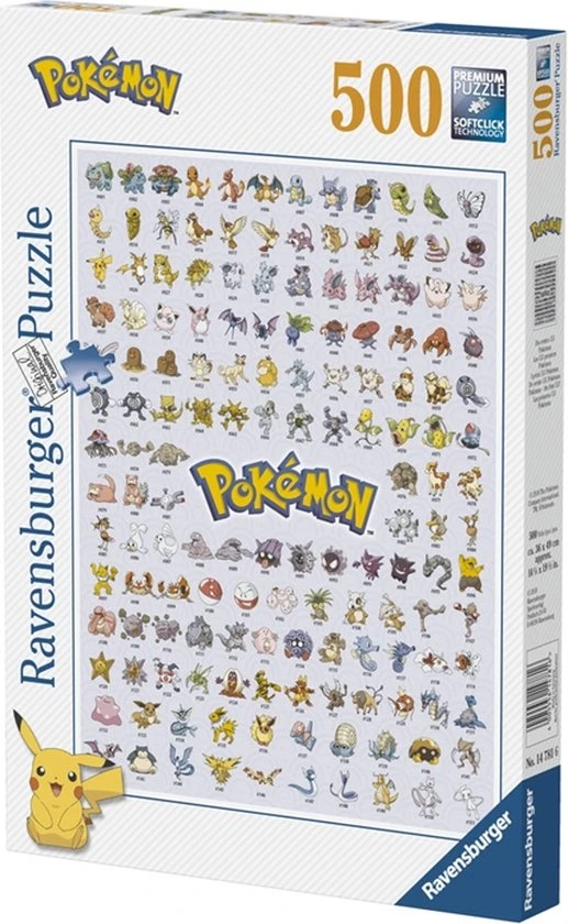 Ontsnap uit de realiteit en stap in de wereld van Ravensburger puzzels. Deze Ravensburger puzzel van 500 stukjes is de perfecte eerste stap naar de wereld van de grote puzzels. Ideaal ook voor puzzelaars die alleen op zoek zijn naar een puzzel voor tussendoor. Dankzij de met de hand gemaakte stansmessen is de vormvariatie van de stukjes oneindig. Jong en oud zullen genieten van deze Eerste generatie Pok?mon puzzel met 500 stukjes.
