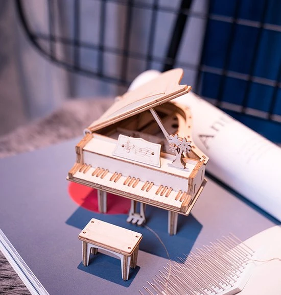 Dit leuke bouwpakket van een vleugel piano, de Grand Piano van Robotime, heeft een uniek en origineel ontwerp. De bouwplaten zijn allemaal laser voorgesneden.
