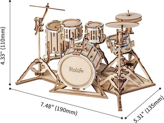 De Robotime Rolife Drum kit TG409 is een houten miniatuur bouwpakket met geweldige details. Een klassieke instrument: de drumstel. Dit bouwpakket bestaat uit 246 laser gesneden onderdelen waarmee je dit leuke instrument in elkaar kunt zetten.Lees meer op Megamoviestore.com!