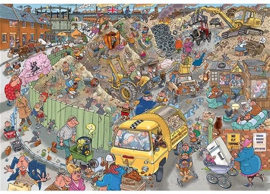 Een ritje naar de vuilnisbelt was voor de een altijd een leuk uitje, maar voor de ander een ware hel. Nu is dat nog steeds zo: overal spelen kinderen, de verkeerde auto?s worden gesloopt en katten hebben ratten in het vizier die enthousiast zijn om in te trekken. Stel je eens voor hoe deze sc?ne uit vervlogen tijden er vandaag de dag uit zou zien. Er is een hoop veranderd, maar is het door afval scheiden allemaal gemakkelijker geworden, of lopen sommige bezoekers nog steeds rood aan van frustratie? Dat is het beeld dat jij puzzelt.